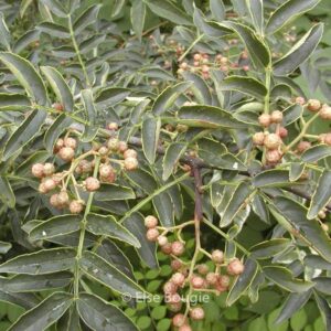 sterk aromatische struik vruchten chinese specerij , de rode peperkorrels in de gemnegde mix, en de struik duikt dan ook steeds vaker op in voedselbossen. Het is wel een erg stekelige struik dus oogsten van de vruchten vraagt enig doorzettingsvermogen. De hoogte na 10 jaar is 250 cm. De beskleur is donkerrood. De bloeiperiode is mei. Deze plant is goed winterhard. Aanbevolen aantal per vierkante meter : 1. Nederlandse naam : Japanse peperboom . . Alleen op bestelling leverbaar. Levertijd minstens 1 week.